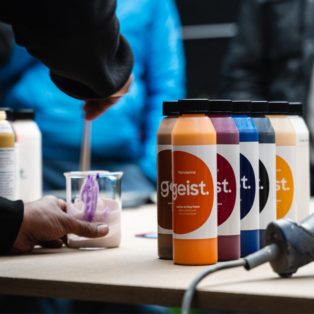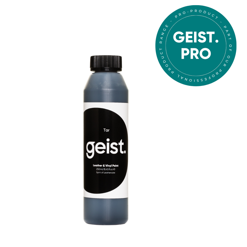 Geist. Leather & Vinyl Paint is a highly elastic water-based paint designed for refinishing leather, vinyl and plastic surfaces. It provides great surface coverage, and an excellent touch, feel and grip to the surface. It has excellent adhesion properties when used with Geist. Primer, Geist. Top Coats & Crosslinker ensures you have a durable long lasting finish. It is available in 22 different shades to assist with mixing any required colour match. Luminous and fluorescent colours are additionally available upon request. Just like the Primer & Top Coats, Geist Leather & Vinyl Paint needs to be sprayed using a spray gun or airbrush for best finish and results.