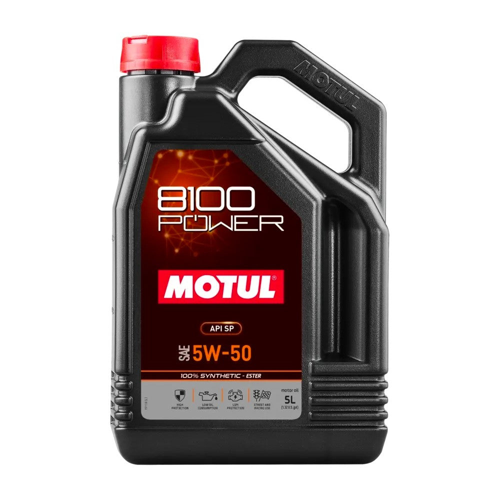Power your engine with Motul 8100 Power 5W-50—trusted by professionals and enthusiasts for unmatched performance and protection.